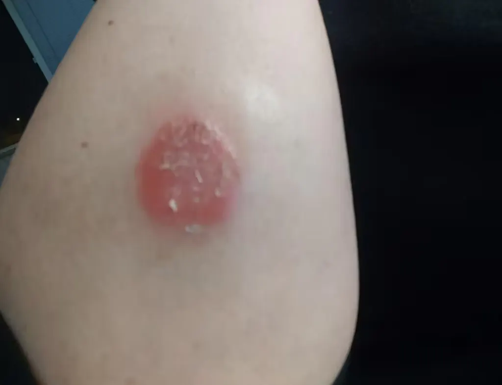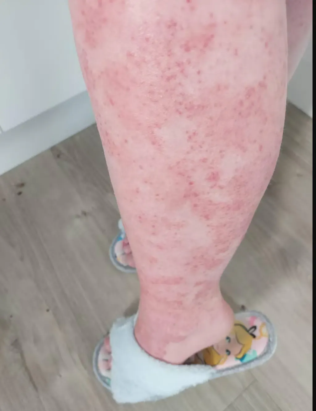 Ne vem točno, kaj sem imela, vendar je bilo videti kot izpuščaj - temno rdeči mehurčki na katerih se je koža luščila in razpokala. Pojavilo se je tudi močno srbenje. Nisem prepričana, kakšna je bila natančna diagnoza.