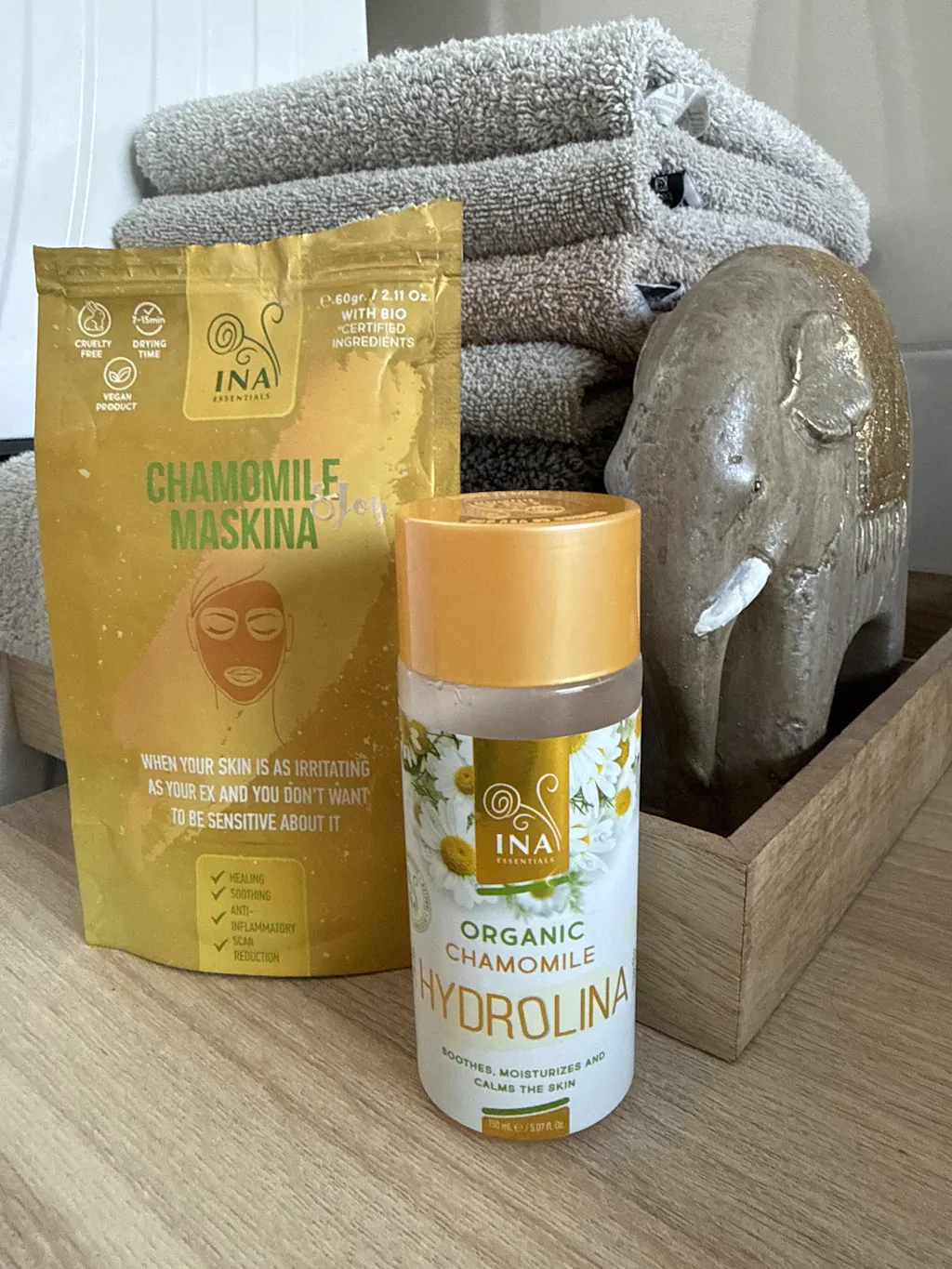 Po približno tednu dni sem si ogledala še ostale izdelke INA Essentials in naročila oba kompleta za nego psoriaze. Zdaj čez dan uporabljam cvetlično vodo, zvečer pomirjujočo kremo in zeliščno milo za telo. Po mesecu in pol uporabe sta srbenje in luščenje občutno manjša. Izdelke bom zagotovo uporabljala naprej in nameravam dodati kamilično, aloe vero in melisino vodo.